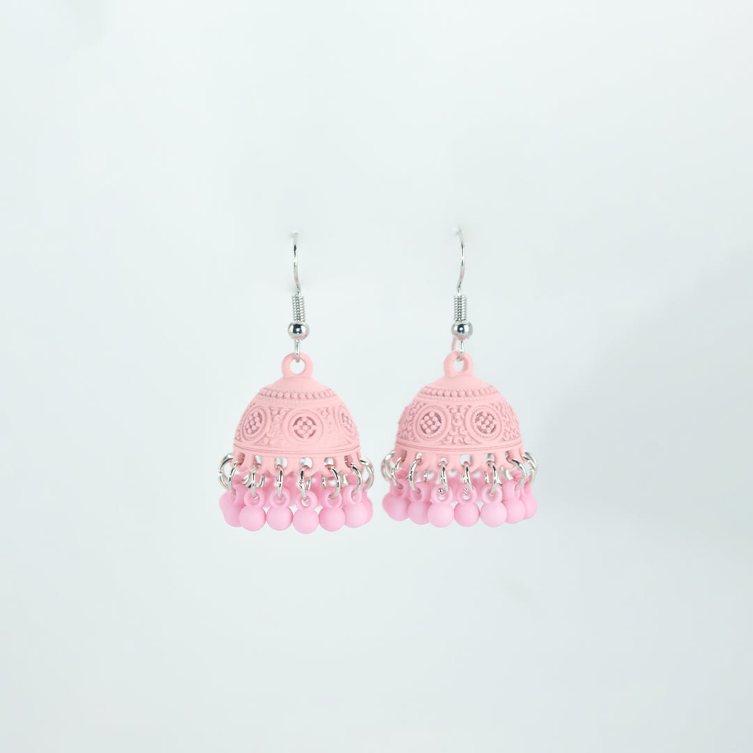 Gulabiya is a whisper of elegance. Bathed in the softest pink like a drop of rose in milk this Jhumka reflects innocence, lightness, and grace. Its delicate structure carries cultural roots, but its hue softens the boldness into something tender and romantic.