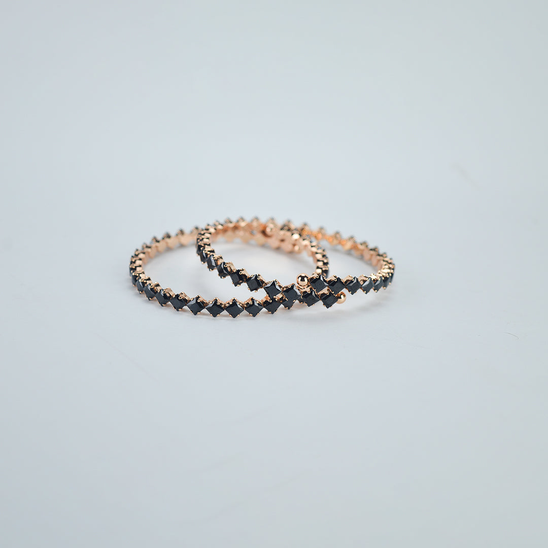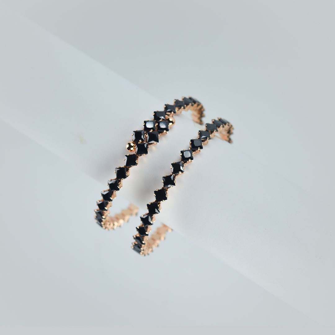 Midnight Grace is a tribute to precision, strength, and undeniable elegance. These twin gold bands are structured and bold — each embedded with perfectly cut rhombus-shaped black diamonds that command attention. Their geometric beauty, paired with a stiff golden form, makes this pair feel like an armor of royalty, fit for someone who leads with quiet confidence.